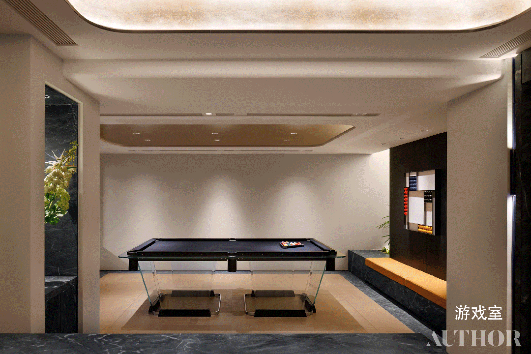 套房和餐厅间设想了一个多功能家庭厅,放置咖啡机、面包机或酒杯陈列等。![]()